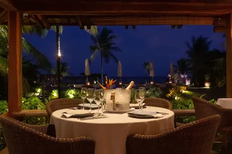 Ao anoitecer, a sugestão é aproveitar bons drinks no deck, acompanhados por uma criteriosa carta de vinhos e as famosas caipirinhas.